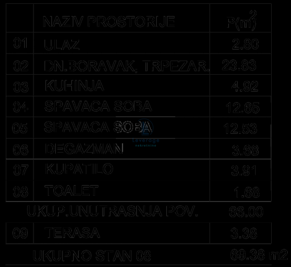 Cvetkova pijaca, 69m2, trosoban stan u novogradnji