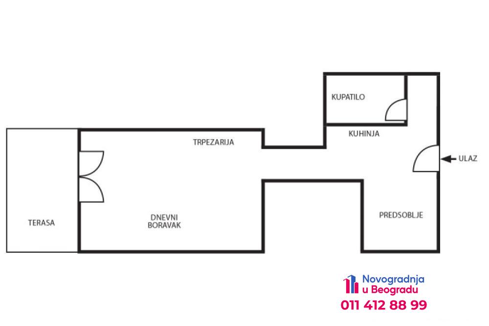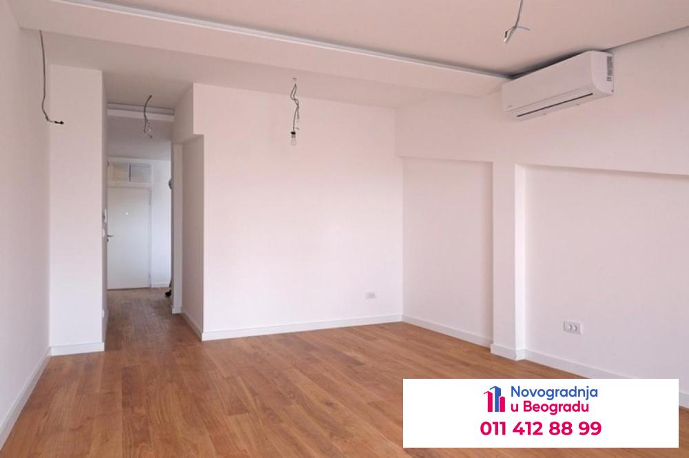 Sastoji se od dnevne sobe, izdvojene kuhinje i dela koji može da se iskoristi kao spavaći ili trpezarijski deo. U najvišem delu stana visina plafona je 2.80 metara, a od polovine dnevne sobe blaga kosina se spušta na 2.20 metara visine u delu gde su balkonska vrata sa izlazom na terasu sa tendom.