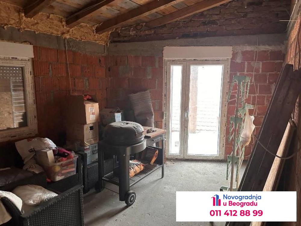 Trenutno je u funkciji prizemlje i podrum, dok je potkrovlje urađeno u crvenoj fazi sa kompletno izvedenom eletro-energetskom instalacijom grejanja, codom i kanalizacijom, i PVC stoarijom. Na spratu koji se sastoji od deganžmana, dve sobe, kupatila i terase potrebno je završiti obradu zidova, podova i fasade. Krov je potpuno nov, sa urađenim olucima i opšivkama.