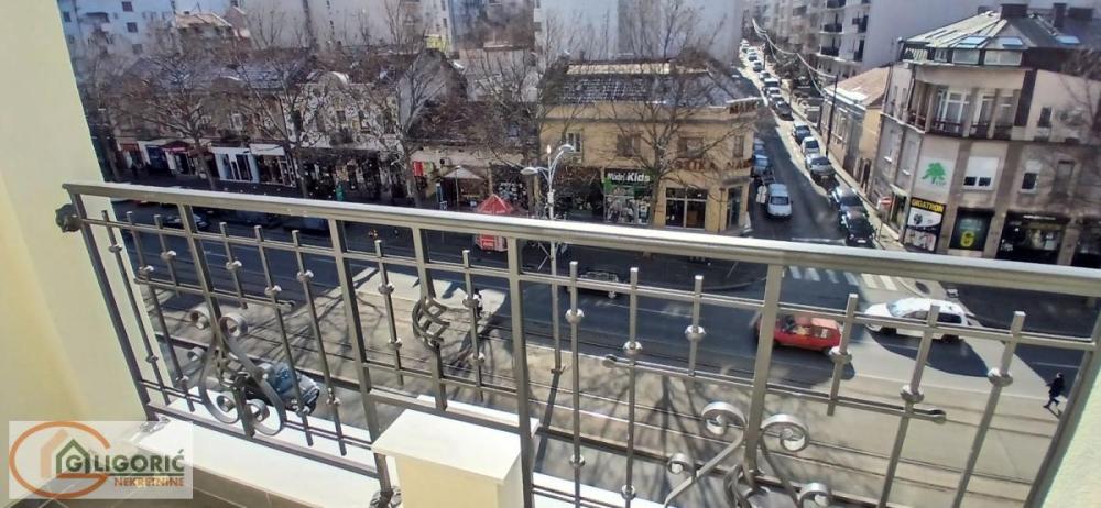 Prostorije: prostrana dnevna soba sa trpezarijom, dve spavaće sobe, kuhinja, kupatilo i dve terase sa pogledom na Bulevar kralja Aleksandra.