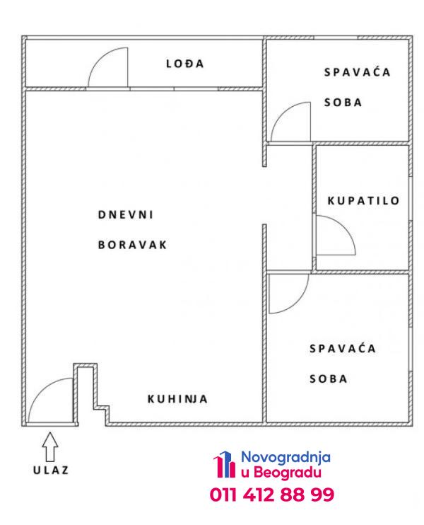 Prodaje se dvoiposoban stan u novogradnji, u neposrednoj blizini škole, pijace, marketa, udaljen svega dvadesetak minuta vožnje od grada. Nalazi se na visokom prizemlju – visina prvog sprata.