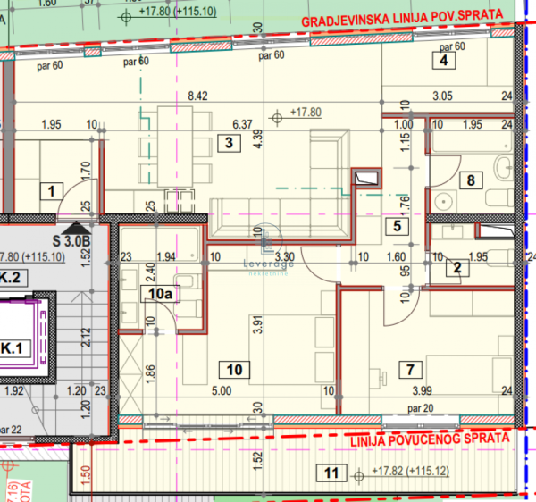 Stan koji vam predstavljamo nalazi se na povučenom spratu, sa kog se pruža prelep, otvoren pogled na grad. Izuzetno je svetao i pažljivo organizovanog rasporeda. Sastoji se od ulaznog dela, toaleta, komfornog dnevnog boravka sa trpezarijom, odvojene kuhinje, hodnika, kupatila, spavaće sobe i master spavaće sobe sa sopstvenim kupatilom, terase, kao i krovne terase od 120m2 koja dodatno upotpunjuje uživanje u prostoru.