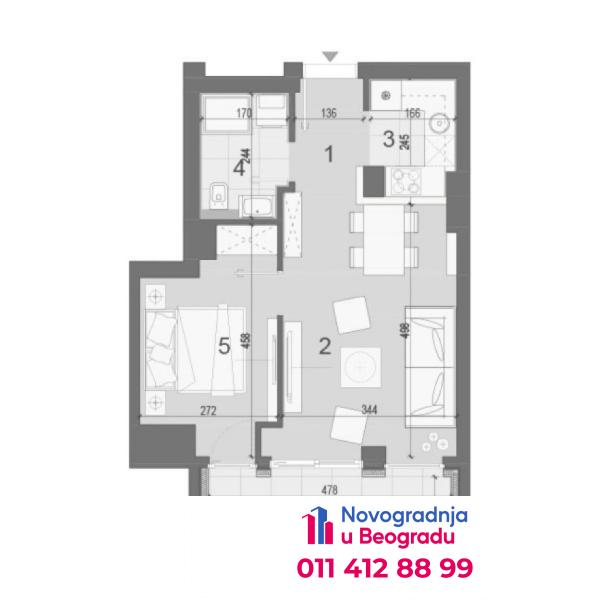 Novi Beograd blok 68, 45m2, dvosoban stan u novogradnji